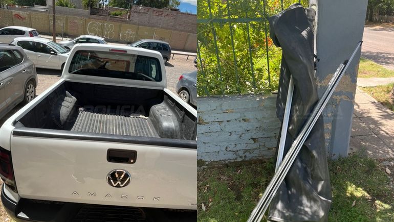 En el lugar se secuestraron bajo cadena de custodia los siguientes elementos: una lona de color negro, cuatro barras de aluminio de aproximadamente 2,30 metros, trabas de seguridad, y herramientas. Finalmente, el sujeto fue demorado y trasladado a sede policial para las diligencias judiciales correspondientes.