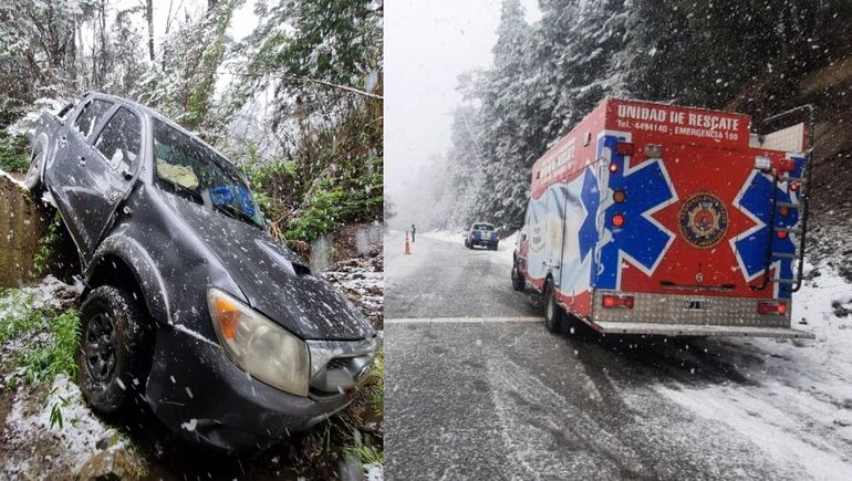 La nieve volvió a complicar la circulación en las rutas de la provincia esta semana. Así lo comprobó una familia que circulaba en camioneta por la Ruta 40 y terminó cayendo a una alcantarilla a la vera de la ruta tras patinar las ruedas del vehículo.