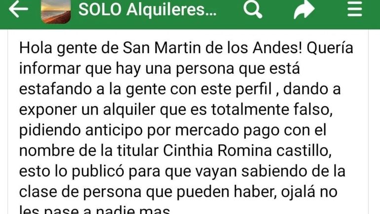 Las alarmas se encendieron nuevamente entre los vecinos de San Martín de los Andes esta mañana, luego de detectarse al menos dos usuarios intentando cometer estafas con la promesa de alquileres permanentes en la localidad.
