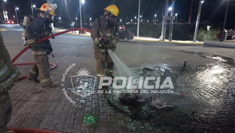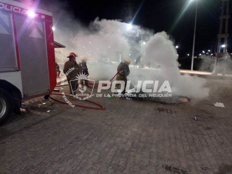 Este domingo por la madrugada una moto se vio envuelta en llamas en plena Avenida Argentina en el sector Plaza de las Banderas. Alrededor de las 3 de la mañana, el incendio alertó a la División de Bomberos Voluntarios de Neuquén Capital y al arribar al lugar se constató que el rodado estaba completamente incendiado.