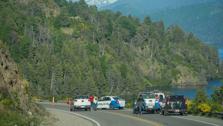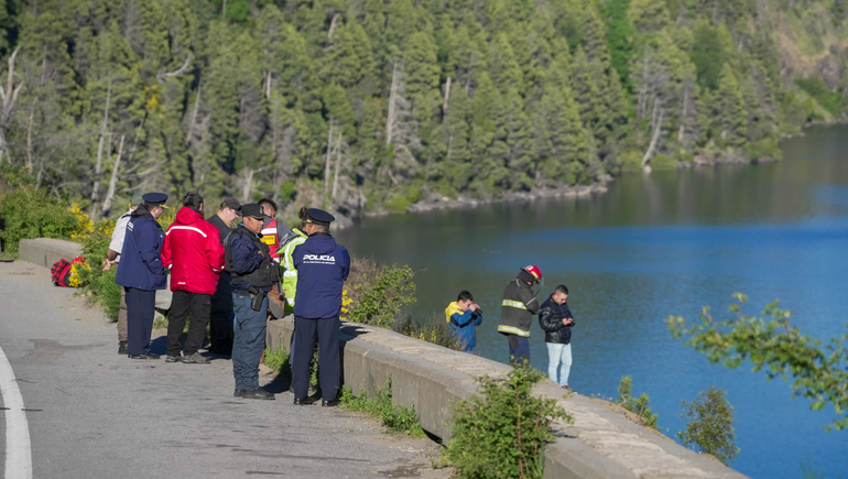 En la zona hay un gran despliegue policial, a unos dos kilómetros de la Costanera sobre la ruta de los Siete Lagos. Efectivos policiales y bomberos colaboran en el operativo. También lo hace por agua, una lancha de Prefectura Naval.