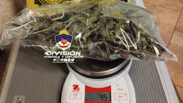 Asimismo, durante las diligencias se hallaron dos plantas de cannabis sativa de un metro de alto por 30 cm de ancho, como así también 13 cogollos que se encontraban en proceso de secado, por lo que se convocó a personal de la División Antinarcóticos Zona Sur, que se encargó del secuestro de las plantas y la detención de un hombre por infracción a la Ley 23737, según lo ordenado por la Justicia Federal.