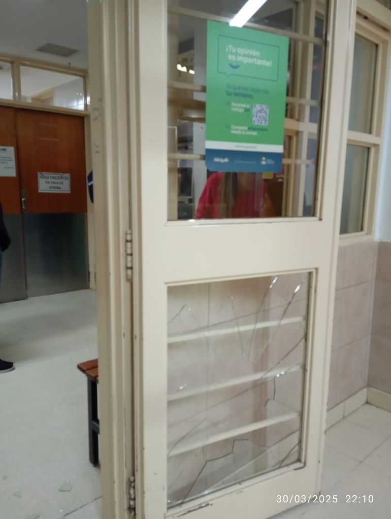 La violencia comenzó a ascender cuando la pareja fue trasladada para la realización del examen médico establecido por protocolo: "la mujer que estaba totalmente exaltada rompió un vidrio del ingreso del hospital y la fiscalía genérica labró una causa por daño". Además, agregó que por el nivel de agresividad consideran que estaba bajo los efectos del consumo de estupefacientes.