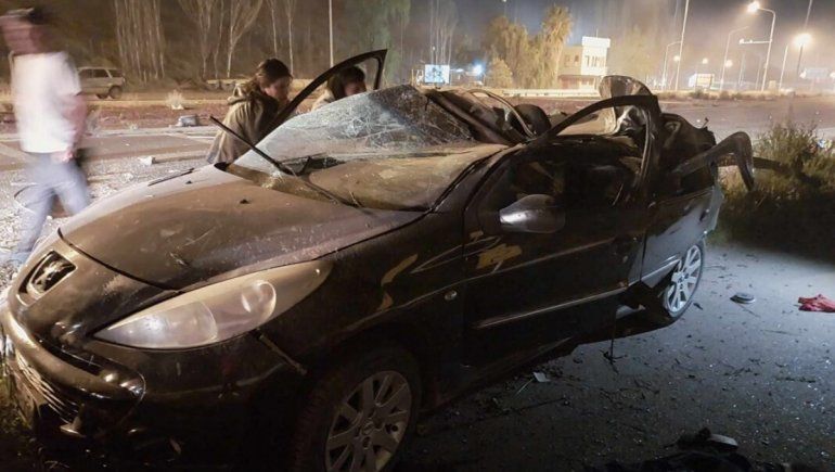 De acuerdo a la mecánica inicial que se estableció, el vehículo -dada la velocidad que traía- sobrepasó el guardarrail y volcó en la calle lateral, lo que dejó el techo del auto completamente destruido.