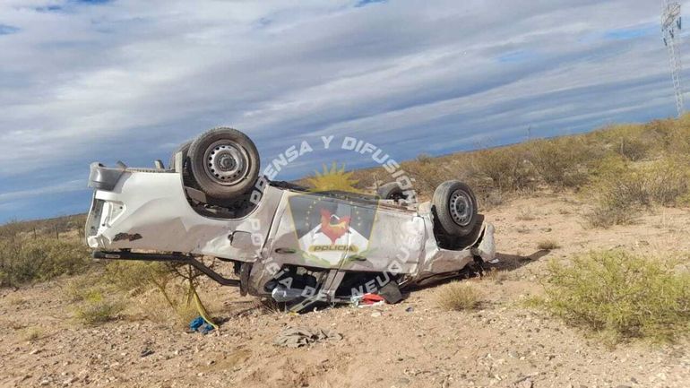 Más adelante, personal de la Comisaría 13 encontró a la camioneta robada del EPEN totalmente destruida: estaba volcada en el cruce de la Ruta 7 y Ruta 8.