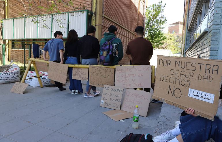 "No queremos un asesino en nuestras aulas", dicen los estudiantes que tomaron la Escuela de Enfermería a las 6:30 am y continúan con las clases supendidas. Les preocupa la incorporación del joven de 16 años que asesinó al periodista Juan Caliani en abril del año pasado y expresaron su rechazo en una nota dirigida a la supervisora del Consejo de Educación.
