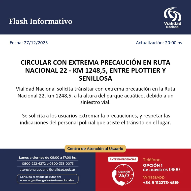 Ocurrió cerca de las 18 en el kilómetro 1252, en jurisdicción de Senillosa. En el microbús viajaba un contingente de Pilo Lil con menores.