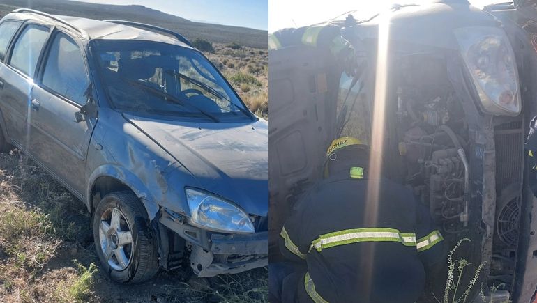 Personal policial y de Bomberos se hicieron presentes en la escena y constataron el vuelco de un auto Chevrolet Classic, quedando el rodado en posición lateral.