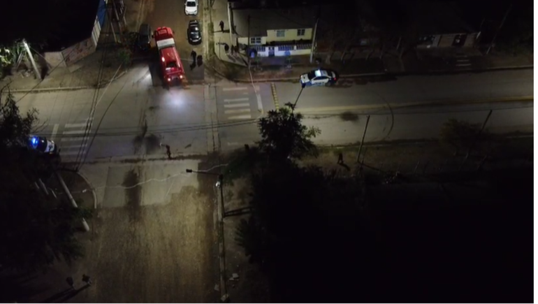 El operativo se extendió hasta las 5 de la mañana. Al menos 10 vehículos de la policía, entre patrulleros, camionetas y dotación de Bomberos, se desplegaron alrededor de la intersección de calles Paimún y Boerr.