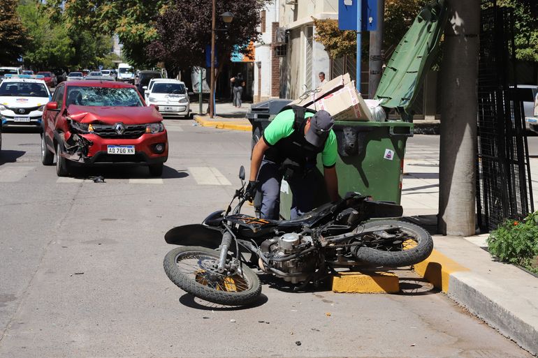 Un motociclista resultó herido este miércoles por la tarde tras protagonizar un choque en pleno centro de Neuquén. El siniestro ocurrió este miércoles minutos después de las 14 en la intersección de las calles Juan B. Justo y Santiago del Estero, cuando un auto y una motocicleta colisionaron.