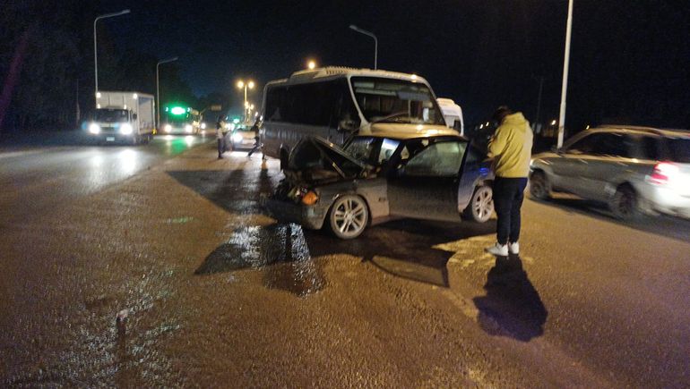 "El minibus estaba en la banquina y al ingresar a la ruta fue impactado por el auto, que producto del fuerte impacto, se llevó el mayor daño", contó y agregó que pese al choque, el conductor del auto, un joven de 25 años, no requirió aistencia médica.