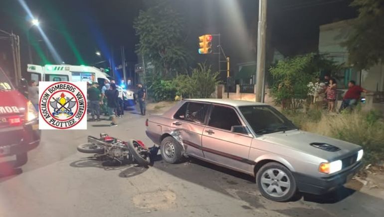 Ya comenzado el 2026, alrededor de las 03:15 de este jueves 1, los Bomberos Voluntarios de Plottier debieron intervenir en un choque ocurrido en la intersección de calles Libertad y Zabaleta de esa ciudad, donde colisionó un motociclista con un auto Volkswagen Senda.