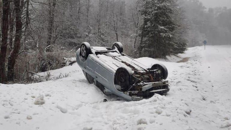 Una conductora perdió el control de su auto y volcó en medio de una intensa nevada en San Martín de los Andes. La mujer tuvo que ser trasladada al hospital local con algunos golpes para su asistencia médica. Desde la Policía y Bomberos Voluntarios pidieron circular con cuidado.
