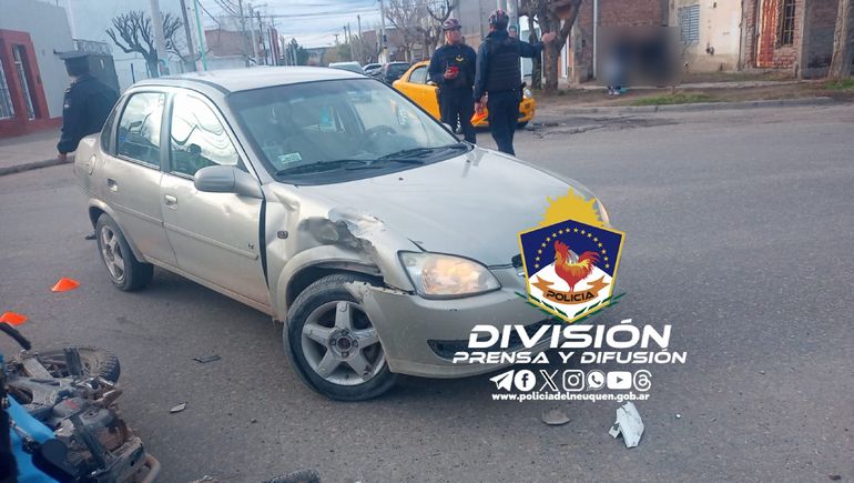 Una joven motociclista de 23 años terminó hospitalizada luego de protagonizar un fuerte choque con su moto contra un auto en el oeste de la ciudad de Neuquén. El test de alcoholemia a la conductora del vehículo le dio negativo y tenía todos los papeles, por lo que le tomaron los datos y siguió.