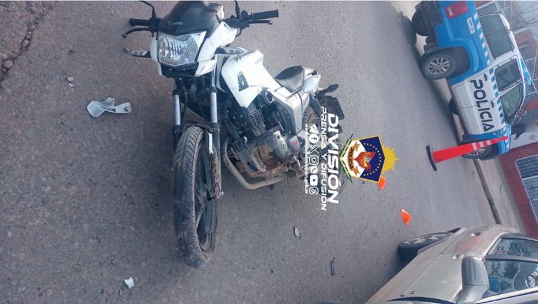 El accidente se registró este martes, minutos después de las 17:30, en la intersección de las calles Belgrano y Reconquista, cuando una mujer de 44 años conducía un Chevrolet Corsa en sentido sur, pero al llegar a esta esquina impactó de lleno con una moto marca Hulk de 150 cilindrada que circulaba en dirección este.