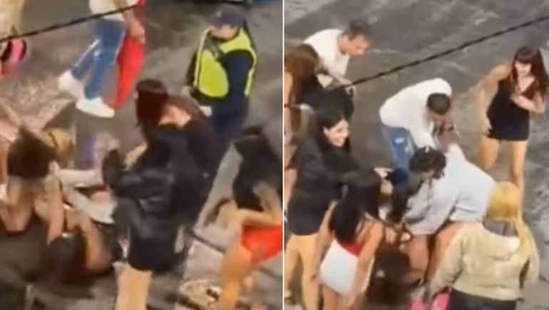 En las imágenes se observa a varias mujeres enfrentándose mientras otras personas intentan intervenir para separarlas.
