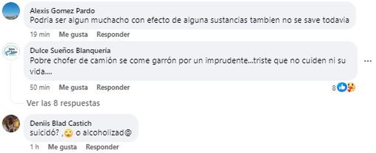 El accidente fatal en redes desencadenó todo tipo de especulaciones en torno a la conducta temeraria del joven automovilista que perdió la vida. Es que no se entiende por qué circulaba en contramano por una ruta que es autovía en ese tramo. Los usuarios más sensatos se llamaron a silencio o lamentaron el siniestro vial. "Qué tremendo, pobrecito. No se puede juzgar lo que pasó", dijo una mujer.
