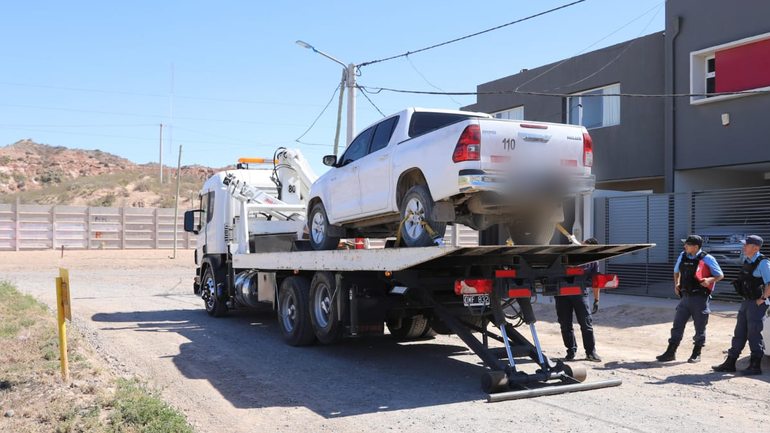 LMNeuquén confirmó que ya está secuestrada la camioneta que no les arrancó a los ladrones y será trasladada en una camilla de la Policía para luego ser requisada.