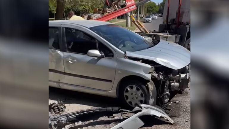 Si bien no se dieron detalles de la mecánica del accidente -al no haber personas lesionada no hubo intervención judiciales-, las imágenes posteriores al impacto muestran que mientras la camioneta Renegade terminó chocando contra un árbol, al auto Peugeot le quedó completamente destruida su parte delantera, como así también uno de sus laterales.
