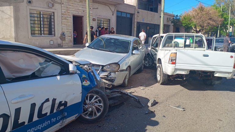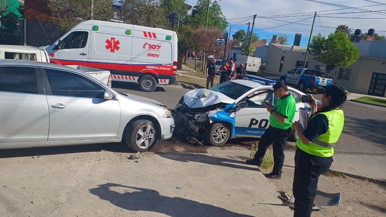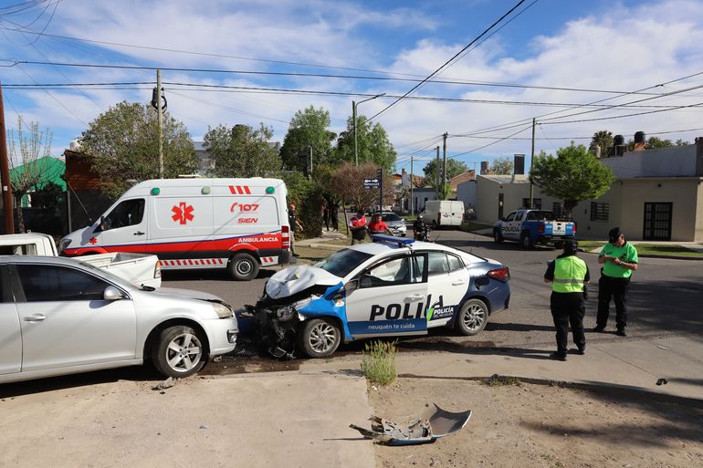 Una camioneta y un móvil policial chocaron violentamente en una esquina de la ciudad de Neuquén. Ocurrió este martes, cerca de las 16 horas.
