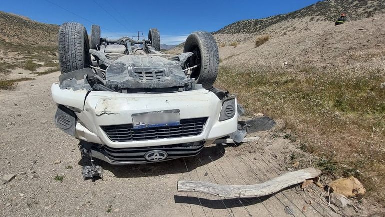 Los bomberos voluntarios de esa ciudad también fueron convocados por gente que pasó por el lugar y observó a una camioneta Toyota Hilux que había volcado y se había desbarrancado a un camino de ripio paralelo, una huella de arreos de la trashumancia.