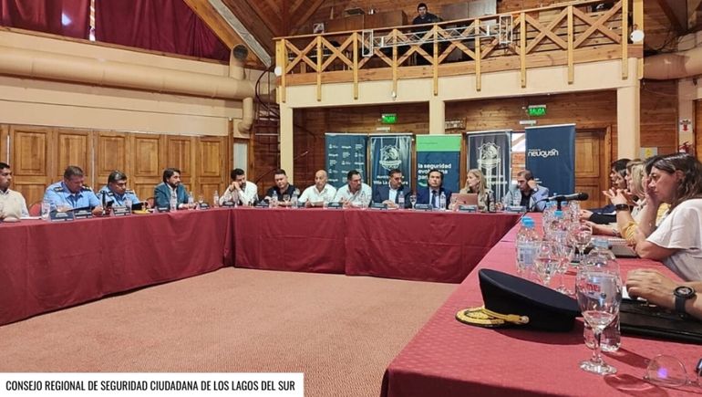 La reunión la encabezó el ministro de Seguridad Matías Nicolini, acompañado por autoridades municipales, miembros de la Policía provincial, funcionarios y funcionarias del gobierno neuquino y el fiscal jefe de la zona, Gastón Ávila.