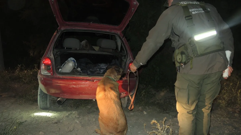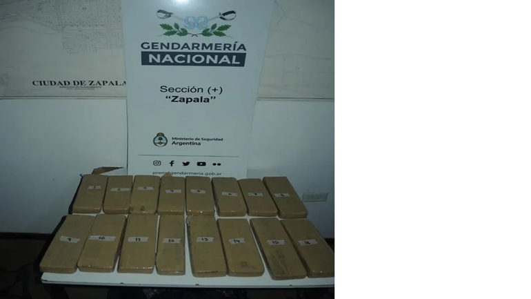 Mientras tanto, los gendarmes se comunicaron con el juzgado federal y lo notificaron de la requisa del vehículo con la asistencia de uno de los canes detectores de drogas conocido por su nombre de Dex. En ese marco, fueron hallados un total de 16 panes con un peso aproximado de 13 kilos y medio de marihuana. Por otra parte, en la requisa personal al detenido, se encontraron 94 mil pesos en efectivo. También, entre los elementos incautados, se destacó un teléfono celular.