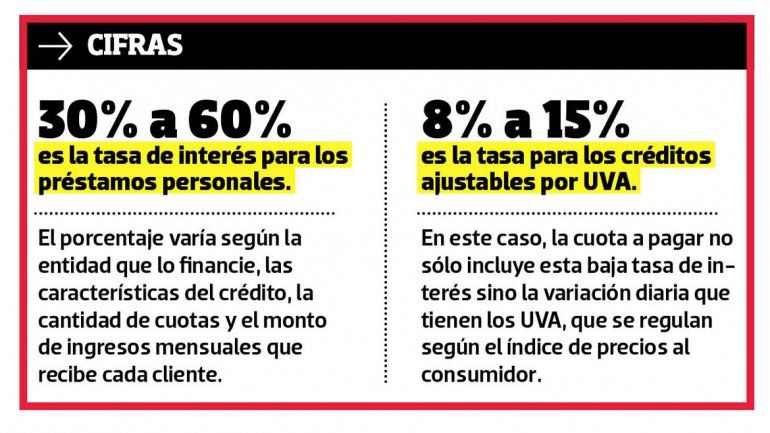 Este tipo de créditos personales, que se ajustan por la inflación, tienen una tasa de interés que va del 8% al 15% según cada banco, y las expectativas de una variación baja de los precios motiva a muchos a creer que su cuota no se incrementará de forma abrupta