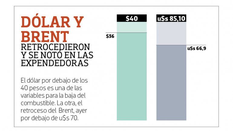 En este contexto, si las principales variables para el precio de los combustibles -el dólar y la cotización del crudo- siguen estables, quitarían presión en los surtidores.