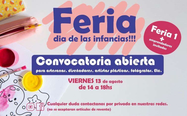 A partir del lunes 26 de julio, se abrirá la convocatoria a artesanos, diseñadores, artistas plásticos, fotógrafos, (no se aceptaran artículos de reventa) a participar de la feria itinerante programada para el 13 de agosto. Si te interesa participar podés contactarte a través de las redes sociales: @laferiauno en Instagram y La FERIA UNO en Facebook.