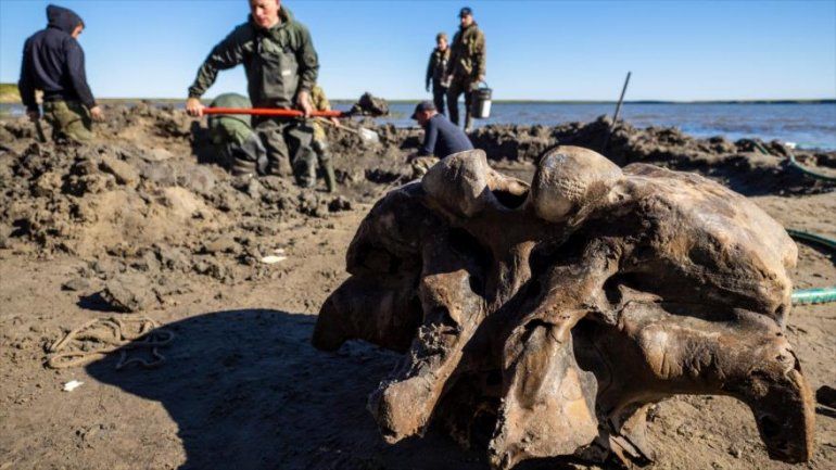 Hallaron en un lago del norte de Siberia, en Rusia, restos increíblemente bien conservados de un mamut completo que vivió al menos hace 10.000 años. Científicos rusos analizan los huesos , después de que residentes locales los descubrieran.