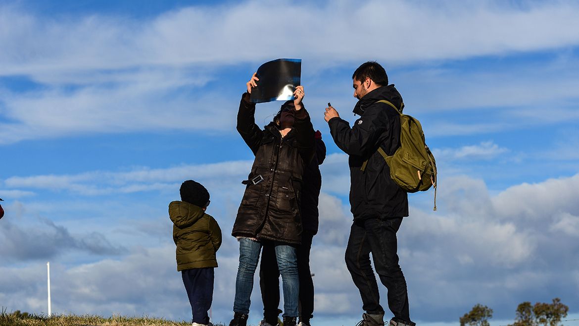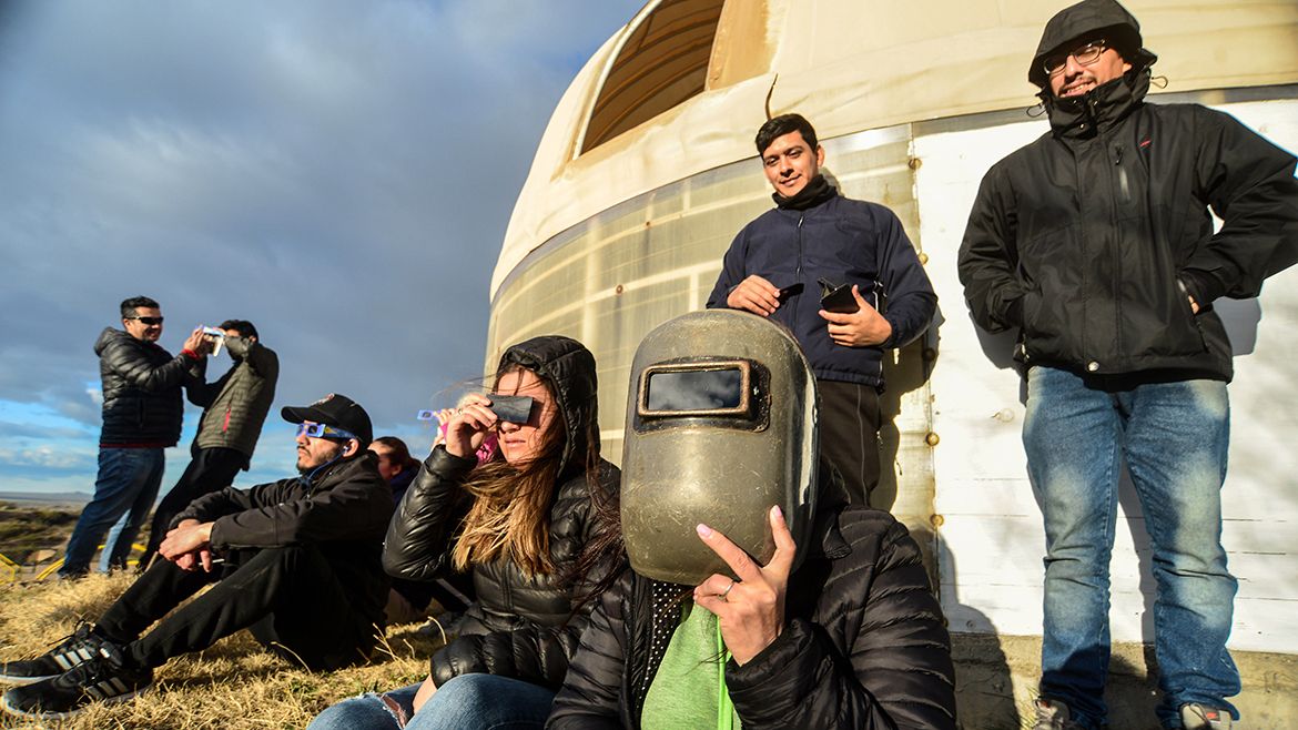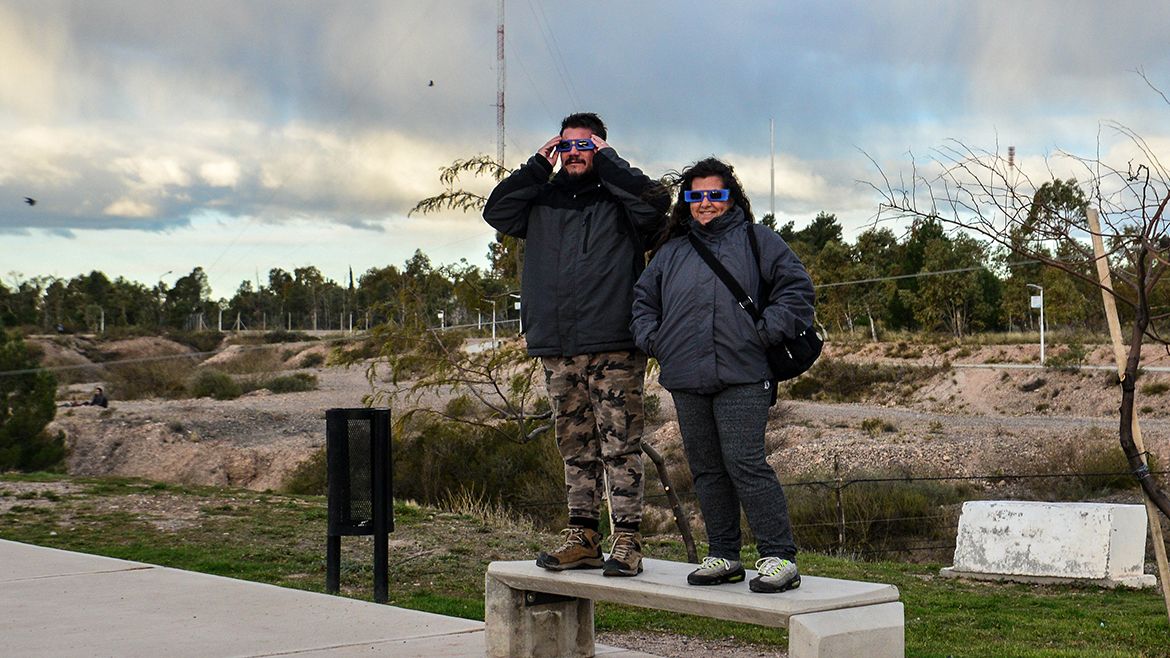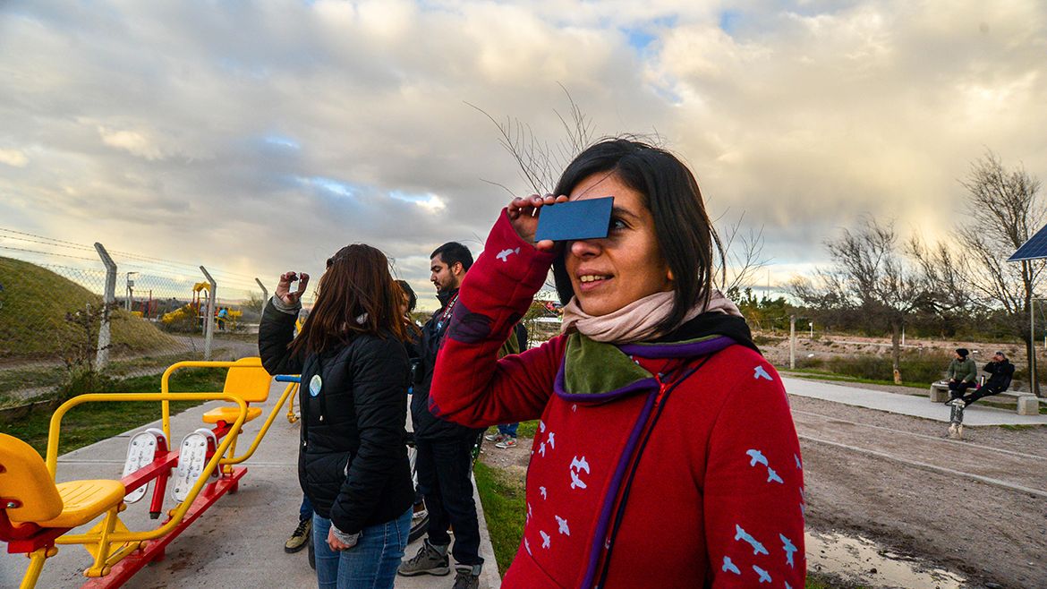 Los neuquinos le hicieron frente al viento helado para disfrutar del eclipse. Salieron a plazas y balcones en toda la ciudad, aunque el sitio más concurrido fue Parque Norte, en los alrededores del Observatorio Astronómico. Allí, muchos examinaron el sol desde la lente de un telescopio por primera vez en su vida, una experiencia que difícilmente olvidarán.