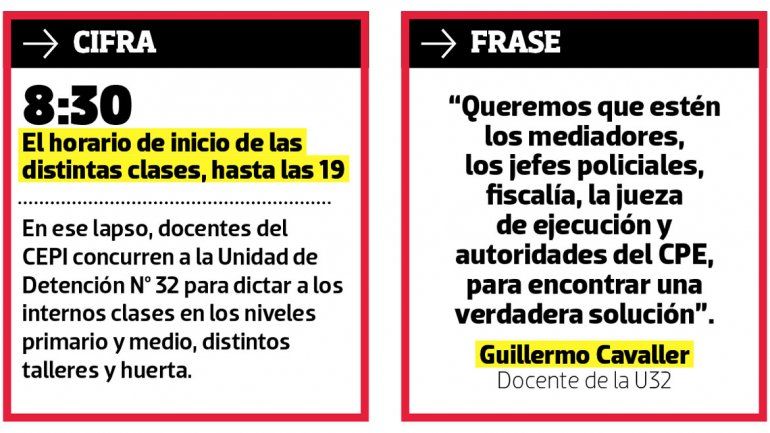 Problemas edilicios y de convivencia con los penitenciarios en la Unidad de Detención N° 32 tensaron la cuerda a tal punto que los docentes que concurren a dictar clases no solo tomaron medidas de fuerza, sino que además denunciaron en fiscalía la situación en la que trabajan y cómo la Policía les niega a los presos el derecho a la educación. Ahora, se abrió una instancia de mediación.