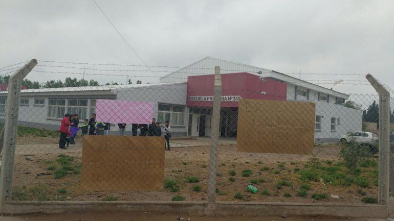 Esta mañana, un grupo de padres tomó por tiempo indeterminado la escuela 358 de Centenario ante la falta de auxiliares de servicio que que afecta el normal dictado de clases.