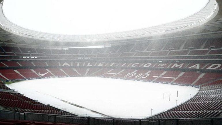 En el estadio Wanda Metropolitano esta mañana había una capa de más de 60 centímetros de nieve y aunque el césped está preparado para este tipo de eventualidades (cuenta con calefacción) está claro que la situación era complicada. El partido deberá ser reprogramado. Atlético Madrid es el líder de la liga española.