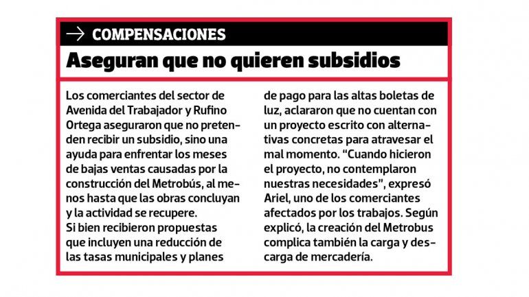 Neuquén.- Las obras del Metrobús prometen mejoras en la movilidad urbana para miles de usuarios, pero se convirtieron en un dolor de cabeza para los comerciantes de la Avenida del Trabajador, quienes desde hace tres meses conviven con motoniveladoras y una calle cortada al tránsito que redujo sus ventas en un 80%. Aunque desde el Municipio les piden paciencia, ellos solicitan que aceleren los trabajos y una ayuda para llegar con las persianas altas a la fecha de inauguración.