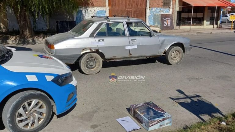 Éste al notar la presencia policial, arrojó el juguete al suelo y se subió a un auto Peugeot 504, donde lo aguardaba otro hombre. Sin embargo, los uniformados lograron detener el vehículo y a simple vista pudieron observar que en el interior había varias prendas de vestir con sus respectivas etiquetas, lo que hizo suponer pertenecían a un hecho delictivo anterior.