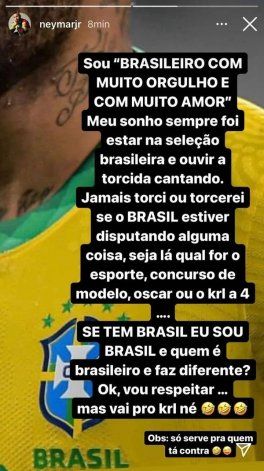 La Copa América que se disputa en Brasil y que definirán este sábado entre el local y Argentina, tiene aristas raras tanto como que, aunque parezca increíble, muchos hinchas brasileños apoyan a la albiceleste, circunstancia que hasta despertado la bronca en el propio Neymar, quien hasta posteó un mensaje clarito en sus redes sociales: “Váyanse a la…”.