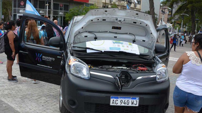Una silenciosa Renault Kangoo, que funciona con carga eléctrica, fue exhibida por el centro capitalino. Según explicó el secretario de Modernización de la Municipalidad, Rubén Etcheverry, los costos son similares a los vehículos con motores a explosión sumado a que la movilidad eléctrica es una tendencia del futuro.