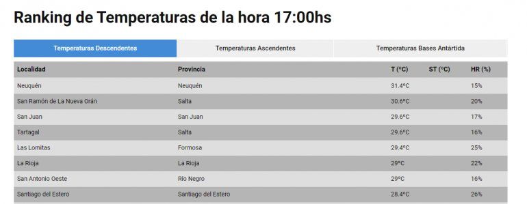 A las 17, la capital provincial registró 31,4°C de acuerdo a la medición del ente nacional y superó a San Ramón de la Nueva Orán de Salta, que apenas superó los 30 grados, y es el lugar más caluroso de Argentina. Cientos de neuquinos aprovecharon la tarde de sol y calor para disfrutar del paseo costero.