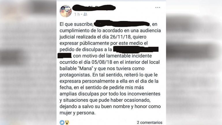 “Acepté que le dieran una probation porque realmente esos meses fueron muy cansadores para mí. Lo único que pedí era que él me diera una disculpa pública en cualquier medio y de todas maneras no cumplió, porque sólo lo hizo en su muro de Facebook en privado y no dijo que cometió un abuso”, aseguró la joven y agregó: “Quería una disculpa y que el hecho no quede impune. No puede venir cualquiera a tocarte y que no pase nada”.