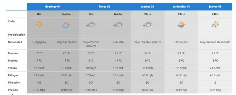 Para el comienzo de la semana, la AIC pronostica un aumento en la intesidad del viento con ráfagas que podrían superar los 70 kilómetros por hora pero con registros térmicos que seguirán en aumento y alcanzarán los 33 grados.