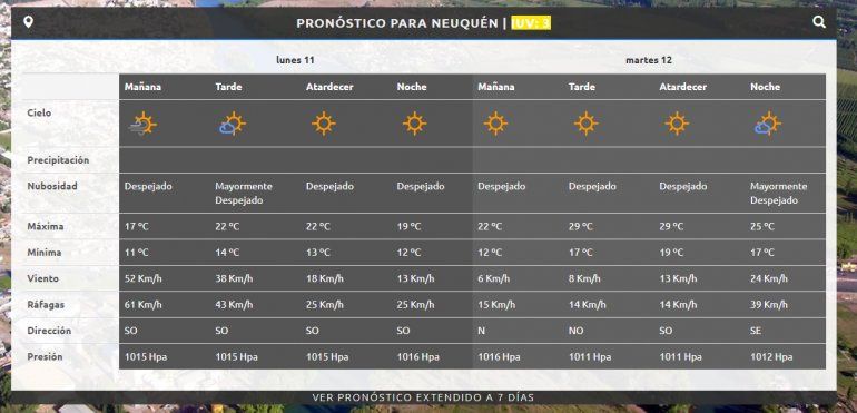 El miércoles vuelve el calor. La máxima esperada es de 37°C durante la tarde en un día en la que el cielo estará parcialmente nublado. Hacía la noche se espera la formación de algunas tormentas, que podría traer algunas lluvias a la región. El jueves se espera una jornada algo ventosa, con ráfagas de hasta 51 km/h, y una máxima de 34°C.