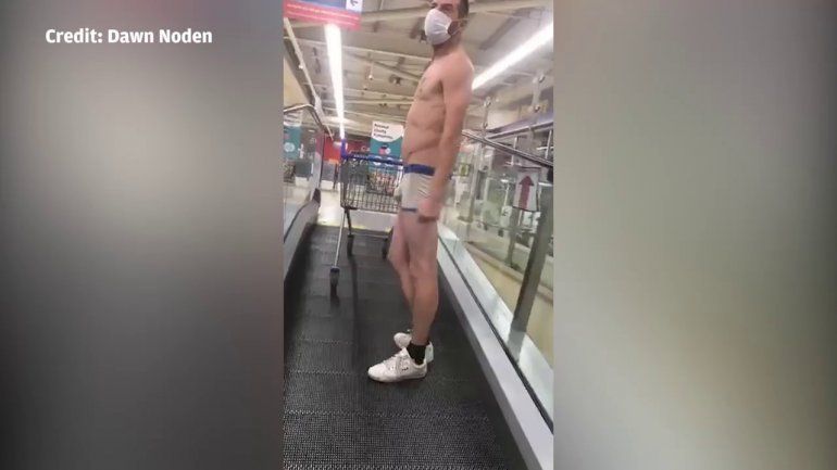 En el video, que fue grabado por su esposa y se hizo viral, se ve a Noden empujando un carrito y de fondo se escucha a su pareja decir "la ropa no es esencial". Cuando el joven quiere entrar al supermercado, un trabajador les impidió la entrada.