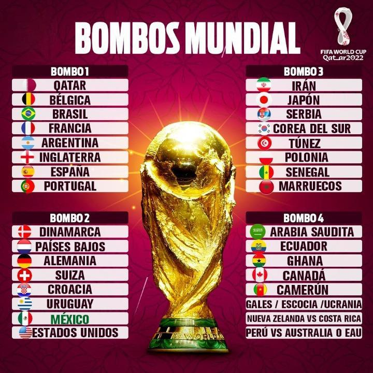 El elenco argentino estará en el bombo 1 con Qatar, que ya tiene definido que encabezará el grupo 1, Brasil, Bélgica, Francia, Inglaterra, España y Portugal. Salvo el anfitrión el resto deberá esperar al azar para saber que grupo liderarán.