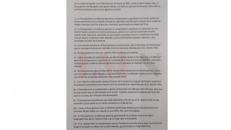 La liberación de Méndez se dio luego de una larga negociación que terminó con el fiscal general José Gerez firmando un acta compromiso con el secuestrador, consistente en doce puntos.