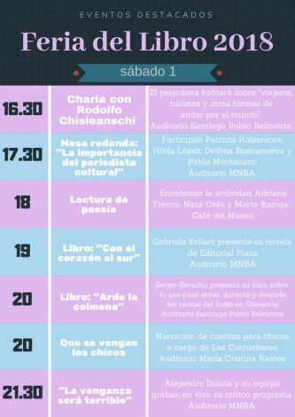 Entre los escritores invitados este año se destaca la presencia de Felipe Pigna, Eduardo Sacheri, Ana María Bovo, Alejandro Dolina, Gerardo Bartolomé, Gabriela Exilart, Sergio Marchi y Marina Borensztein, entre otros autores de diversos géneros literarios.