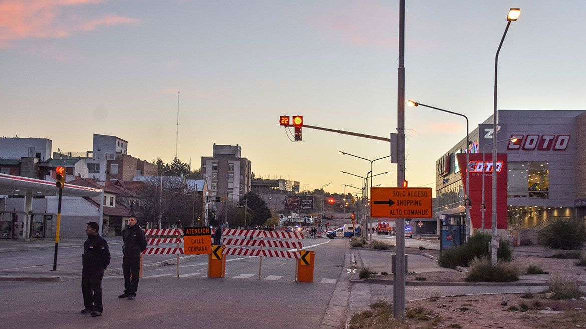 Pasadas las 22, dos cuadrillas de Camuzzi siguen trabajando para solucionar la pérdida de gas que se produce desde las 18 de este martes y que generó la evacuación del Alto Camahue Shopping y el Coto.