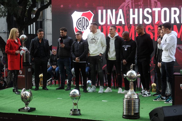 Al escenario subió el manager del club Enzo Francescoli, y los ayudantes de Gallardo, Matías Biscay y Hernán Buján, además del ex titular del club, Rodolfo D’Onofrio.