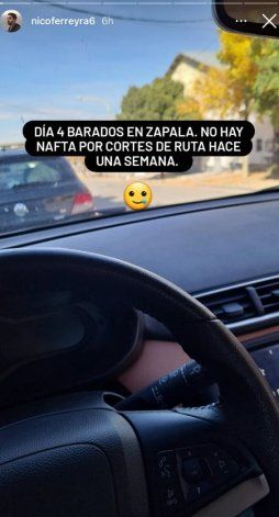 Es que una pareja de la Ciudad de Buenos Aires, Brenda y Nicolás, vivieron las consecuencias de los reclamos de los autoconvocados. Cuando buscaban retornar de unas vacaciones en Bariloche, se quedaron sin combustible en Zapala. "Llegamos el jueves y no nos dejaron seguir avanzando. Y cuando fuimos a cargar nafta, vimos la cola que había y no se movía. Claro, se habían quedado sin", expresó a LMN la joven de 27 años.